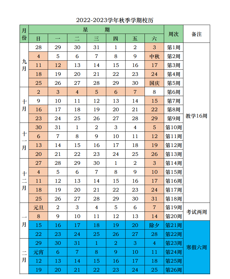 2022-2023学年第一学期(秋季学期)校历-国产一区二区日本在线
